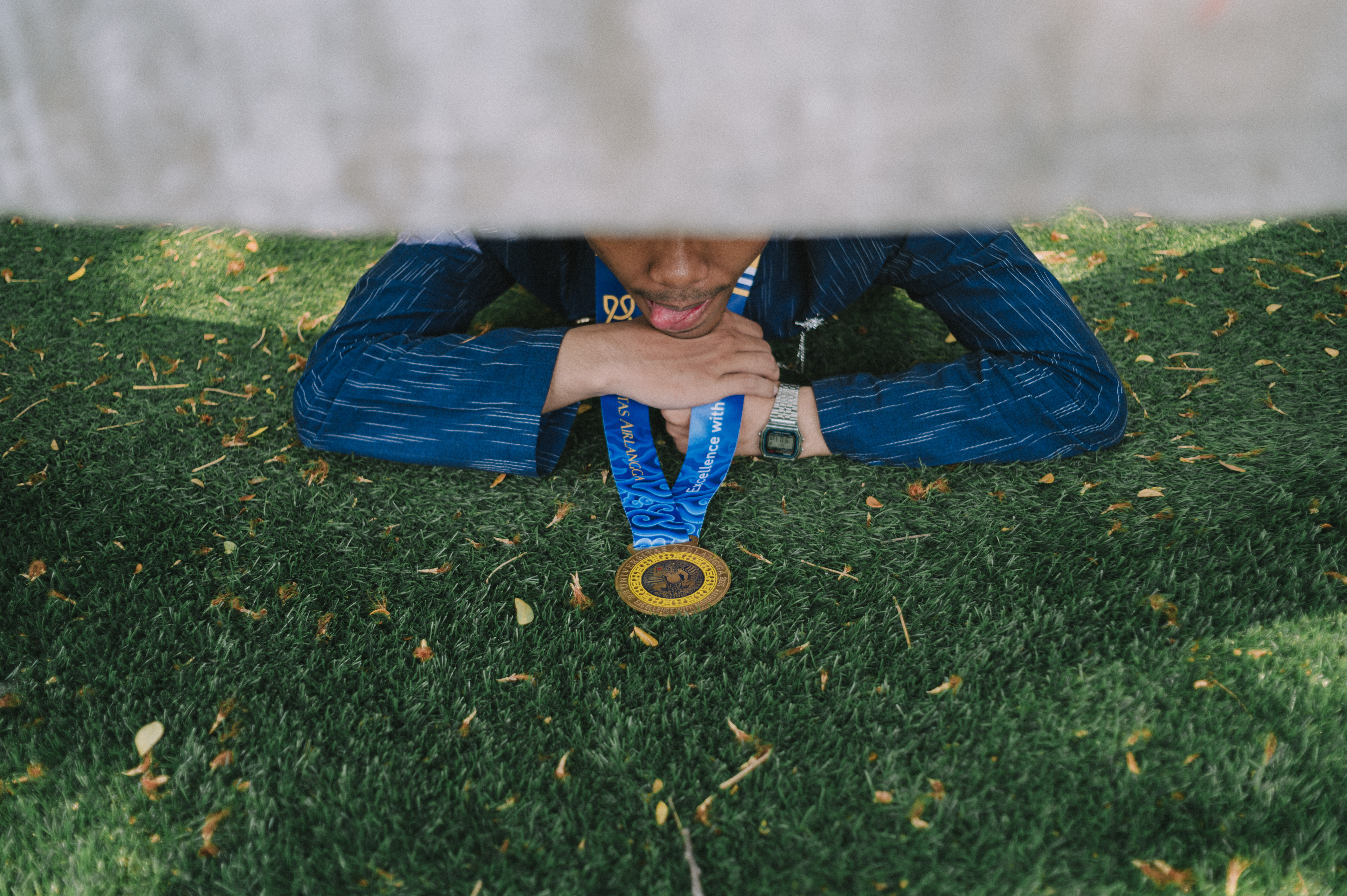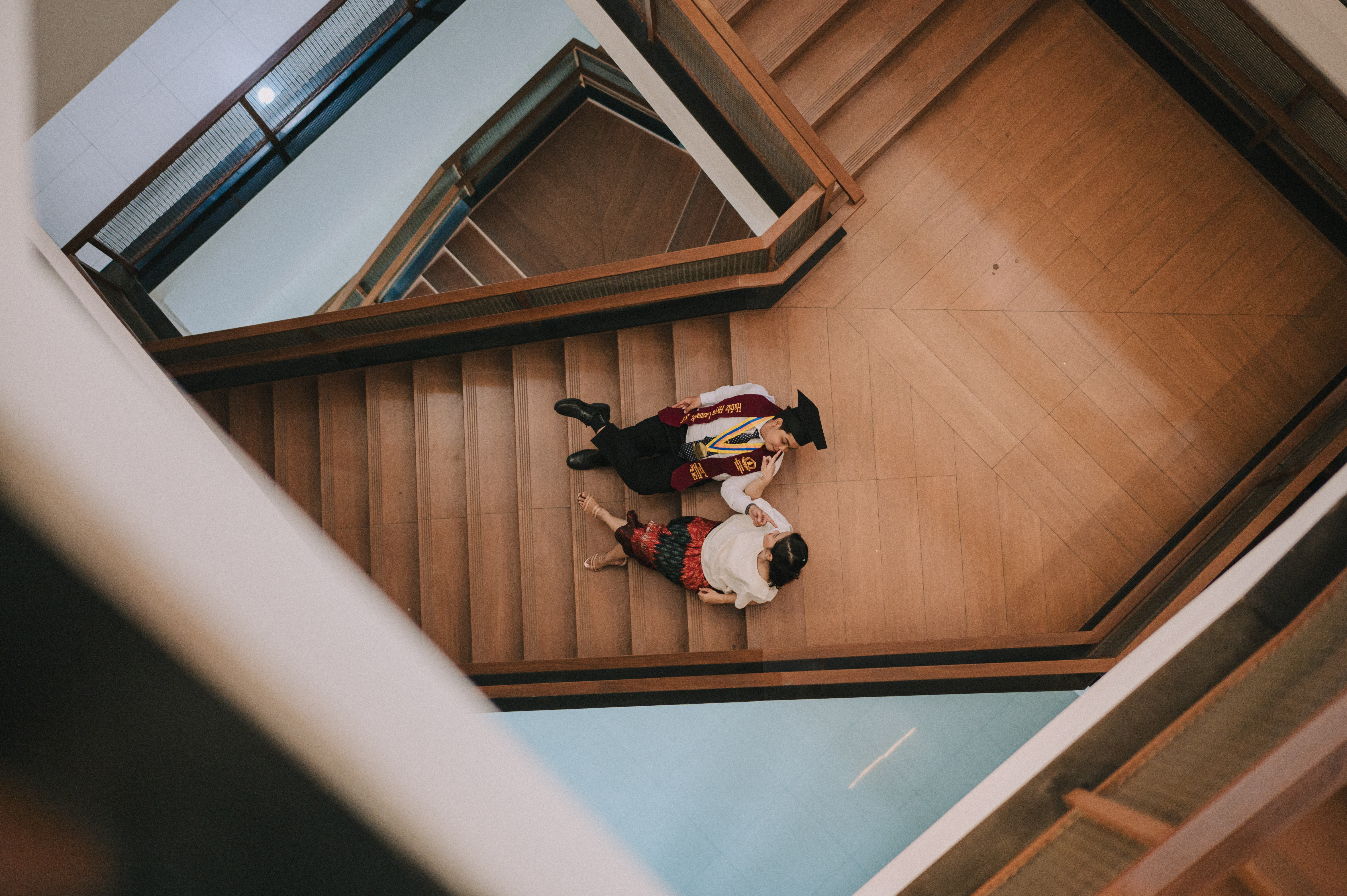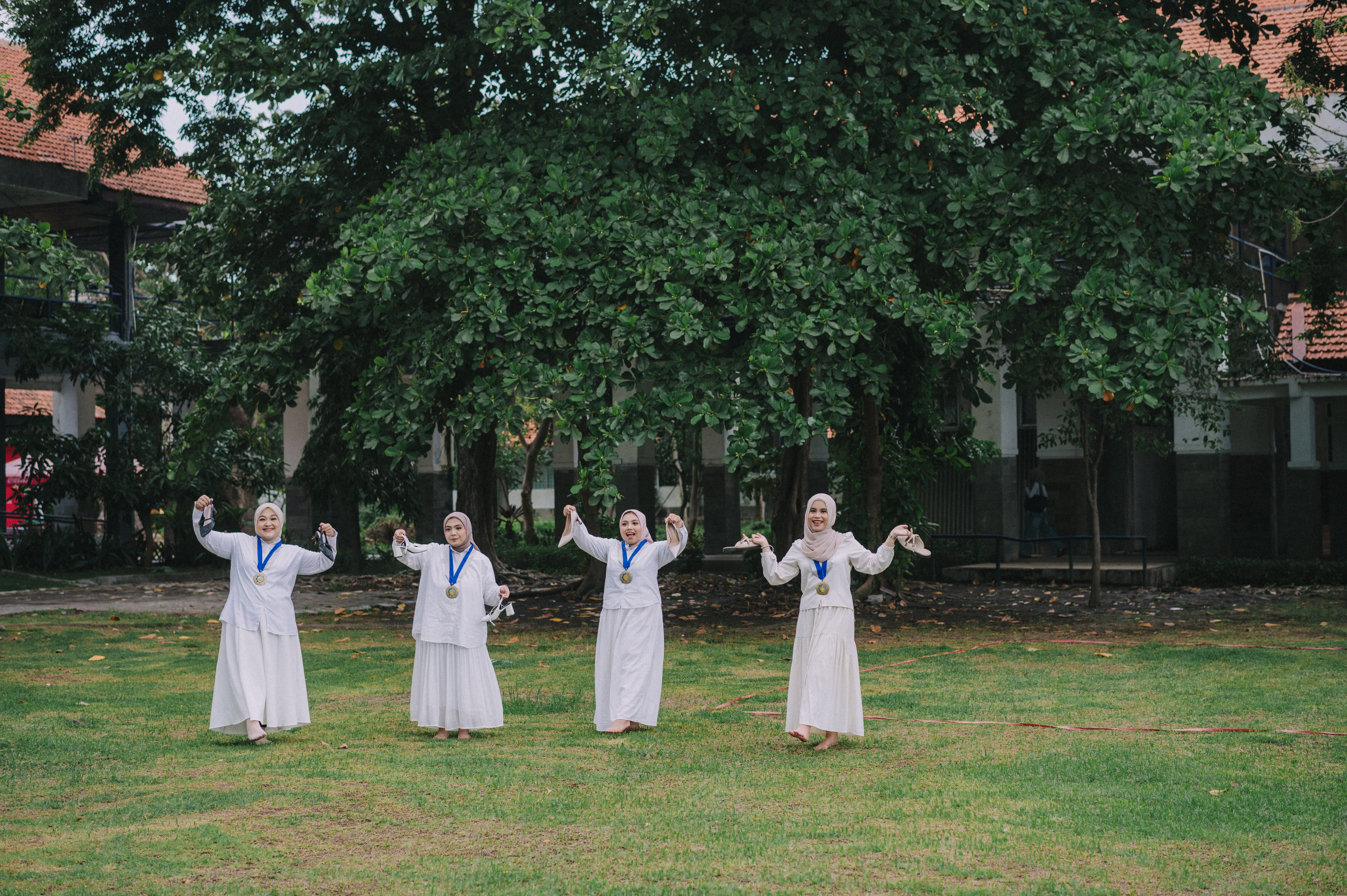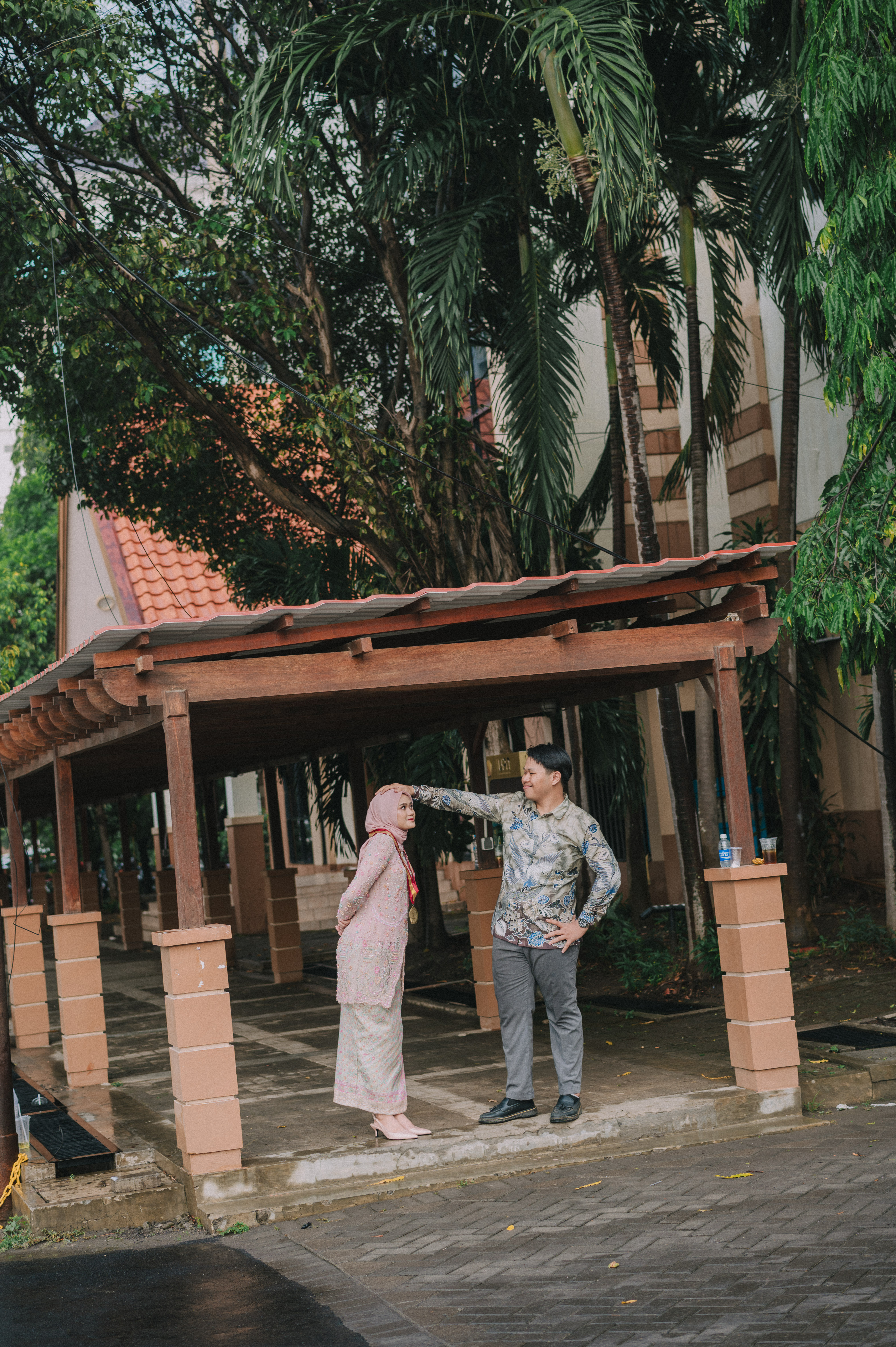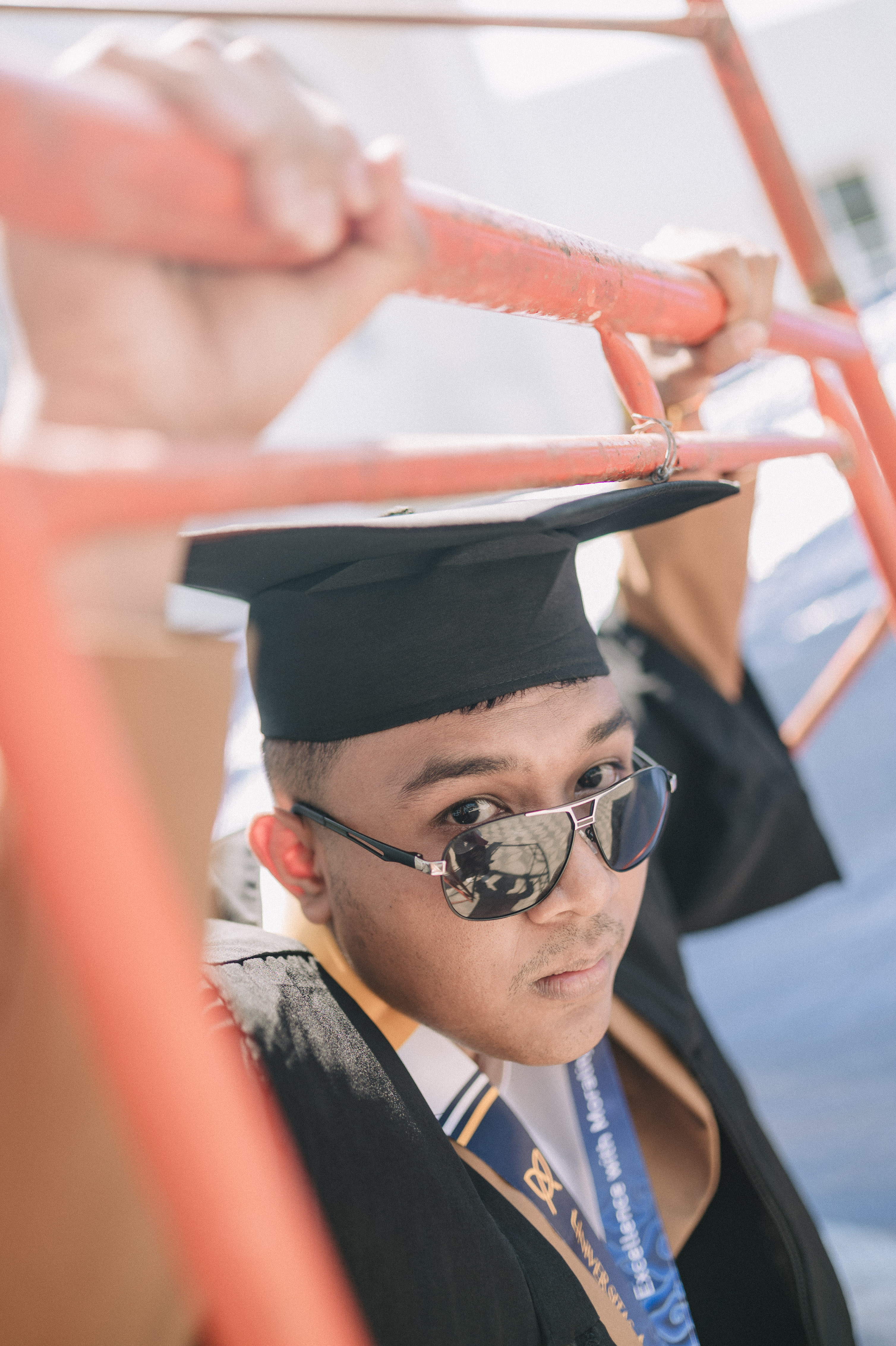 Sesi kelulusan di kampus Surabaya dengan tone hangat.